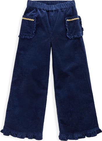 Comfy pinwale-corduroy pants are ready for the party with subtle metallic sparkle, rickrack trim and perky ruffled accents, too.