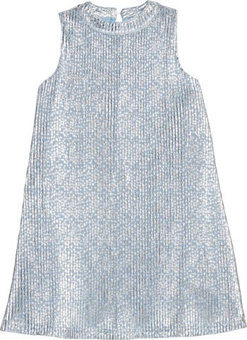 Sparkle and shine in this party-ready swing dress! Featuring a micro-plissé fabric with silver metallic stars, this dress is ready for any soirée.