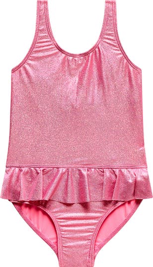 They'll love the fluttery ruffle that moves with them as they splash and play in this shimmery one-piece swimsuit.
