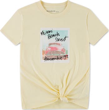 abercrombie kids Kids' Miami Beach Knotted Hem Graphic T-Shirt, Alternate, color, Anise Flower