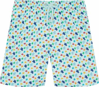 A vibrant pair of swim shorts featuring an array of turtles. Crafted from recyled polyester and elastane, with an elastic waistband and fixed knot drawstring for comfort.
