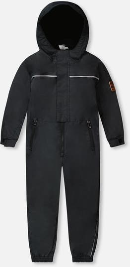 Bold and adventure-ready, this kids mid-season one-piece outerwear in black blends vibrant style with smart functionality. Designed with eco-friendly recycled polyester, this suit features a soft polar fleece lining and a fluorocarbon-free BIONIC-FINISH® ECO coating that protects against water and dirt. With reflective details, adjustable cuffs, and zippered side pockets, it’s perfect for active boys who love to explore outdoors.
