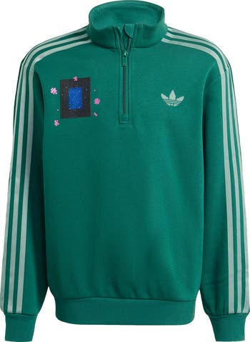 Watch your block-breaking bestie enter the Overworld in sporty comfort with this half-zip sweatshirt, where adidas iconography comes to life in pixel-perfect detail.