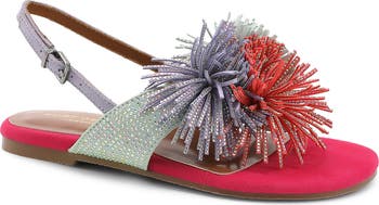 Fringy bursts of rhinestones bring kid-approved fun and signature rainbow hues to this adjustable slingback sandal.