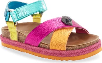 Rainbow-hued leather straps and a colorful, espadrille-inspired midsole embolden this kid-size sandal topped with signature eagle-head hardware.