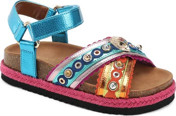 Rainbow hues and sparkly eagle-head hardware bring signature style to this kid-size sandal set on an espadrille-inspired midsole.