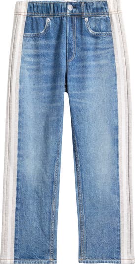Soft and breathable cotton terry is disguised with a denim-inspired photorealistic print to make these pants look like jeans for comfort-meets-cool style.