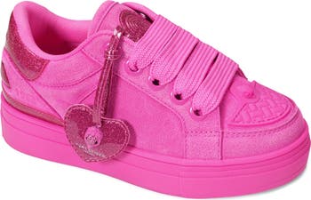 A matching tag featuring the label's iconic eagle head elevates the signature style of this ultrabright sneaker highlighted with glitter for kid-approved detail.