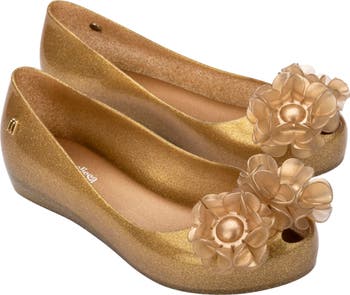 Floral appliqués enrich this charming flat crafted from signature fruit-scented PVC with a cushioned footbed for kid-approved comfort.