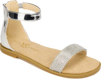 A rear zipper offers easy entry on a two-piece sandal grounded a cushioned footbed and slip-resistant sole for playground-ready wear.