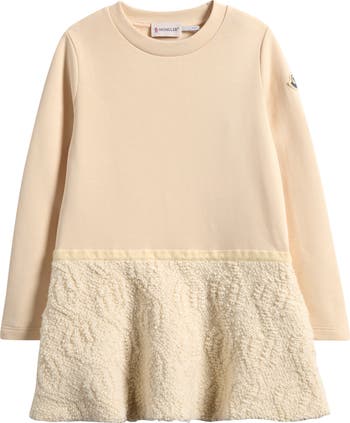 The label known for its impeccable outerwear brings its vision to your tiny trendsetter's wardrobe with a sweatshirt dress designed with an iconic logo patch and a nubby flared skirt.