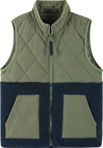 Make sure your kiddo is cozy during the between season with a quilted vest that features high-pile fleece accents.