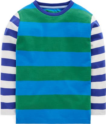 Your little one will not get lost in the crowd wearing this long-sleeve cotton T-shirt juxtaposing standout stripes.