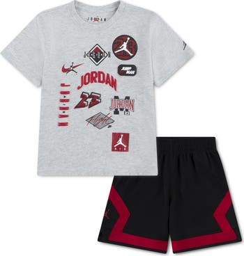 Your budding athlete can celebrate the stunning legacy of Michael Jordan with this supremely comfortable set featuring a cotton-blend graphic T-shirt and coordinating colorblocked shorts.