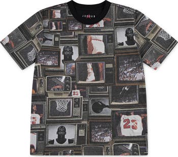 Soft cotton-blend jersey keeps kids comfy from the classroom to the court in this sporty T-shirt featuring throwback snapshots honoring the GOAT behind the brand.