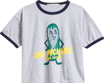 A smiling pickle makes a welcome companion on any outing in a ringer T-shirt that's sized for kids who like to play and relax in the comfort of organic cotton. The colorful style is part of the Pickles collection that celebrates curiosity, everyday adventures and the happiness of enjoying summery weather.
