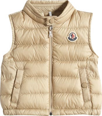 Preppy style and cold-weather practicality merge in this sleek channel-quilted vest featuring lofty goose-down fill and a logo patch at the chest.