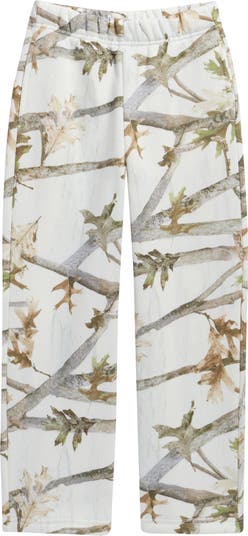A woodsy camo print lets your kid hide in the foliage but stand out in a crowd in sweatpants made of cotton-blend fleece in a fit that stays close while offering plenty of room to move. Perfect for playtime, downtime and every time in between, they're a cozy addition to any cool-weather wardrobe.