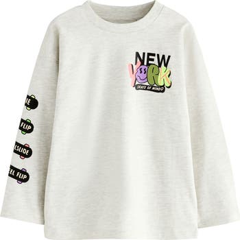 Your junior skater will appreciate the comfort and convenience of this Big-Apple-themed graphic T-shirt framed with long sleeves.