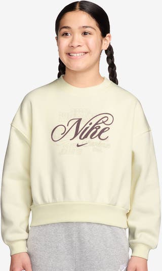 A boxy fit ups the coziness of this kid-size sweatshirt cut from cotton-rich fleece and energized by branding embroidery.