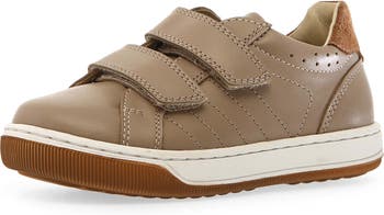 A padded collar and soft leather construction provide breathable comfort for your kiddo in this sporty sneaker secured with a duo of adjustable straps.