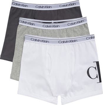 Iconic stay-put logo waistbands and stamped graphics bring heritage style to these kid-size boxer briefs cut from stretchy cotton for daylong comfort.