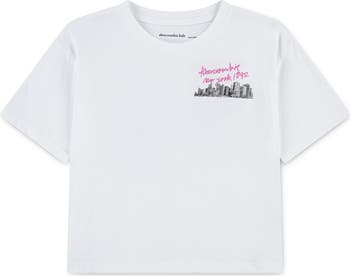 Faded snapshots show some love for the Big Apple on this boxy cotton-blend T-shirt that keeps kids comfy from school days to city adventures.