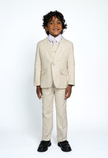 Peanut Butter Collection Kids' Oasis 5-Piece Slim Fit Linen Suit, Alternate, color, Sand