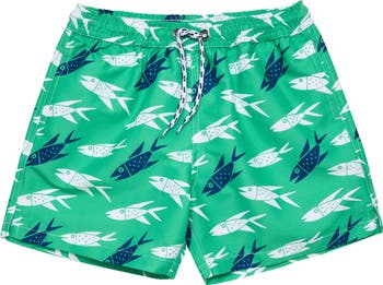 A comfortable lining gives them a chafe-free fit as they splash and play in these swim trunks made with built-in sun protection.