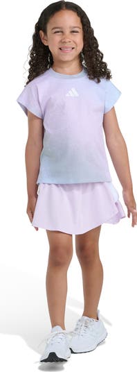 A spotted ombré short-sleeve cotton jersey top is paired with a breathable mesh skort so they can play hard and look put-together while they do it.