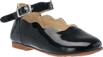 A flexible rubber sole and sheepskin leather lining lend supreme comfort to this scalloped ballet flat made for tiny dancers.