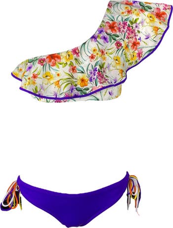 Kids' One Shoulder Floral Print Ruffle Two-Piece Swimsuit
