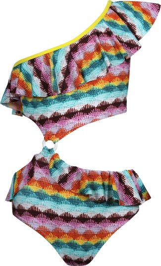 Kids' One-Shoulder Ruffle & Cut-Out One Piece Swimsuit