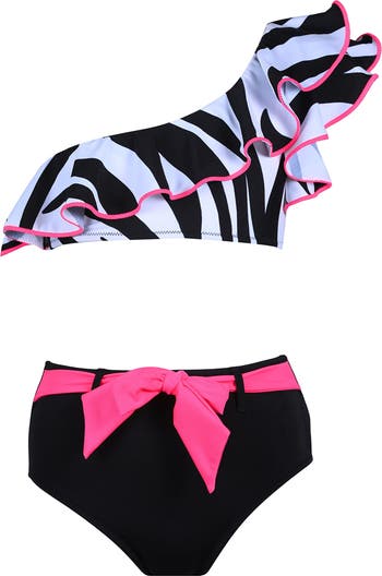 Kids' One Shoulder Zebra Print Two Piece Bikini