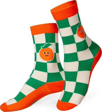 Give a delightfully whimsical gift to the maximalist kiddo in your life with these checkered citrus-themed crew socks packaged in a charming 3D juice-shaped box.