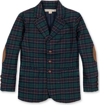 Perfect for pairing with a button down and matching suit pant for a polished look, our dressy suit jacket will elevate your boy's style. Features classic tailoring such as faux leather buttons, flap pockets, notched collar, and faux suede elbow patches. Crafted from soft, brushed organic cotton in a handsome suiting pattern.