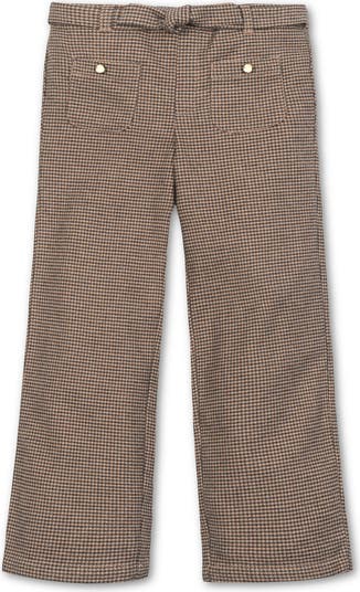Our take on the silhouette of the moment: a wide-leg pant in a beautiful brushed organic cotton woven suiting fabric. The elegant texture makes it ideal for a dressy occasion, while the elastic pull-on waistband and faux waist tie makes it so easy and comfortable for your girl to wear. Front patch pockets with gold buttons add the finishing touch.