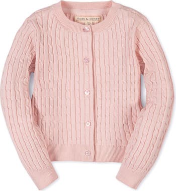 Our adorable classic cable cardigan in soft organic cotton is a sophisticated wardrobe staple for your little lady. This is the piece that layers perfectly with anything from a dressy dress, to a school uniform, to t-shirt and jeans! Features buttons at the center front and an allover cable knit texture.