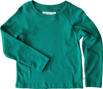 Comfy long-sleeved t-shirt that's not too boxy and not too tight. Fairly made organic cotton. With roomy arms and collars for easy dressing. In bright hunter green.