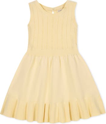 Our tank sweater dress in soft organic cotton is a sweet, sophisticated take on spring style. Features a feminine flounce hem, textured bodice, and a back keyhole closure with decorative bow. A fresh and beautiful warm weather look.