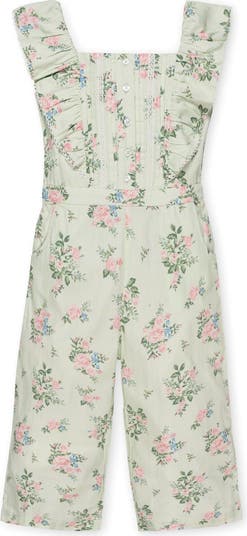 Flouncy flutter sleeves add a special touch to our beautiful wide leg jumpsuit crafted from a beautiful organic cotton sateen. Features a button front closure with pintuck details, crochet trim, side pockets, and elastic in the back waist for a comfortable fit. A stunning piece that can be dressed up or down with ease.