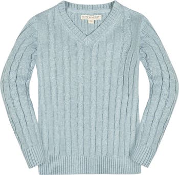 Our organic cotton v-neck sweater is incredibly soft but completely machine-washable, meaning this classic sweater is bound to be a year-round MVP for your guy. Features a traditional cable knit design and rib trim at the collar, cuffs, and hem. Layers perfectly over our assortment of organic cotton button downs for the complete look!