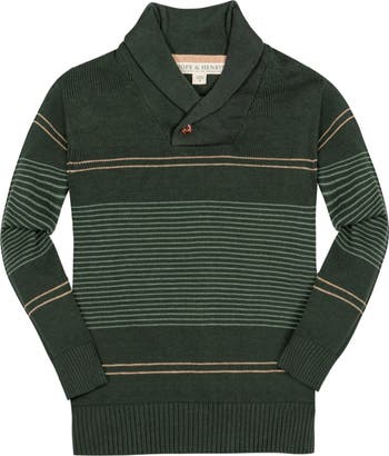 Our shawl collar sweater in soft organic cotton is the ultimate in comfort and style for your guy. Special attention to details such as the shawl collar with button closure and interesting stripe placement make this an instant classic that can be worn on repeat and handed down time and again.