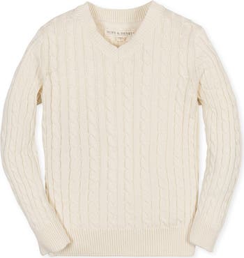 Hope & Henry Kids' Organic Long Sleeve V-Neck Cable Sweater, Main, color, Ivory Cable