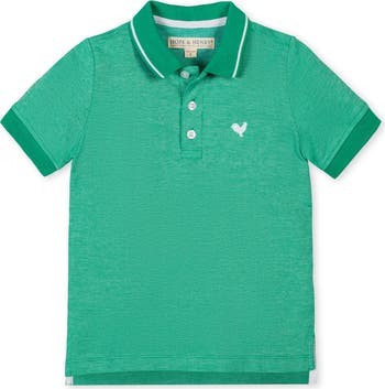 Our take on the classic short sleeve polo features details such as textured knit pique in soft organic cotton, a flat-knit collar, front button placket and side vents. Sure to be a staple in his springtime wardrobe.