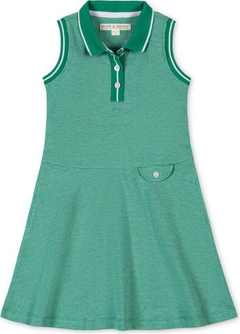 From the classroom to the tennis court, our pique polo dress in soft organic cotton will have your girl ready to take on any spring and summer activity in style. Features easy pullover styling, contrast rib trim at the neck and arm holes, button placket, and decorative pocket at the waistband for a special touch.