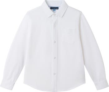 This easy-care sport shirt is made from classic oxford cloth in a solid hue to complement your little one's natty look.