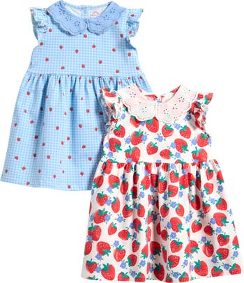 Sweet strawberry prints will make your little one's dress day extra adorable in this two-pack of stretch-cotton styles made for sunny-day twirls.