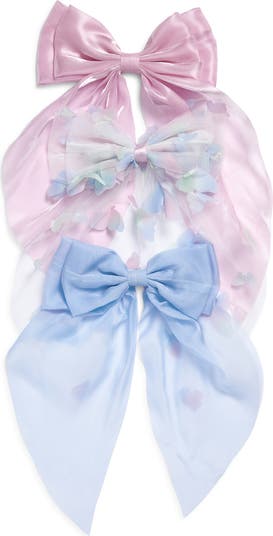 Satiny soft fabric and airy tulle highlight this pretty pack of bow hair clips that your kiddo will love adding to their favorite hair styles.
