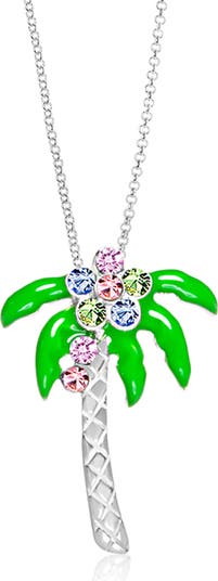 Sparkling crystals and bright enamel bring tropical charm to this palm tree pendant necklace sized for stylish kids.
